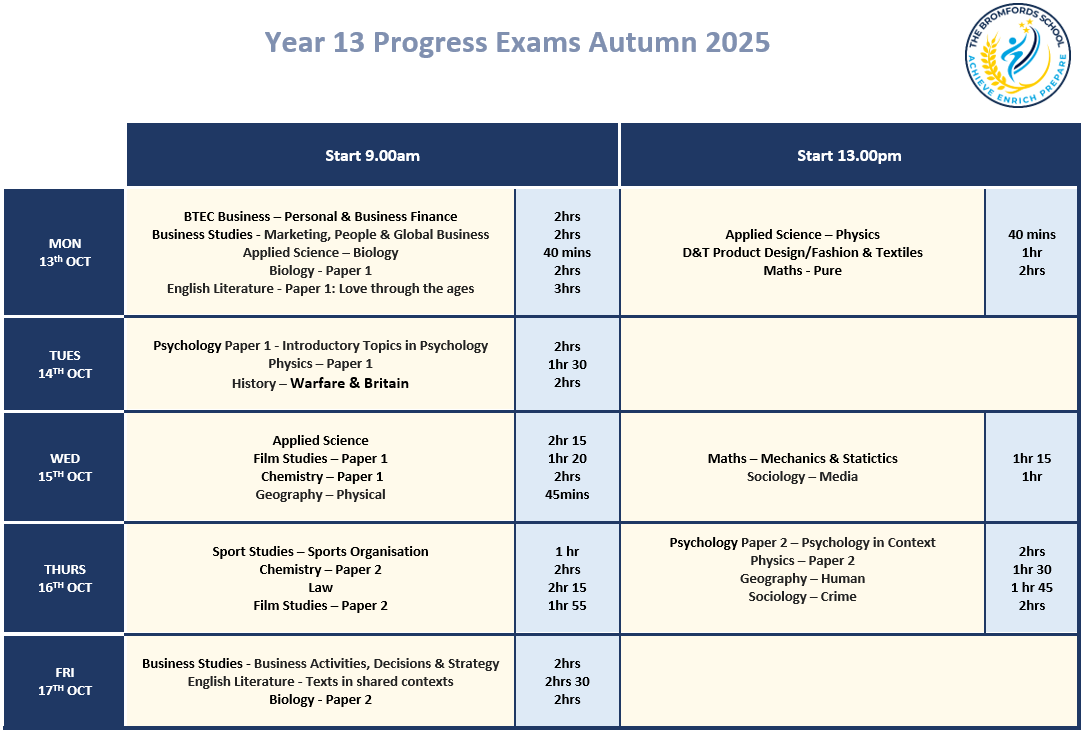 To ensure that students are prepared for the examinations they face for their GCSE and A Levels we carry out assessments across all year groups at least once once per year. The assessment schedule below outlines when these assessments / exams are carried out.